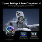 - Efficient Cooling with Smart Temp Control- The USB powered phone cooling fan uses advanced semiconductor technology and a silent fan to prevent overheating during wireless charging. It offers two speed settings: High Speed mode for gaming and Intelligent mode that adapts for optimal cooling with minimal noise. Note: The phone fan does not support magnetic charging and requires a power source. Ensure unobstructed airflow during use and disconnect power when not in use