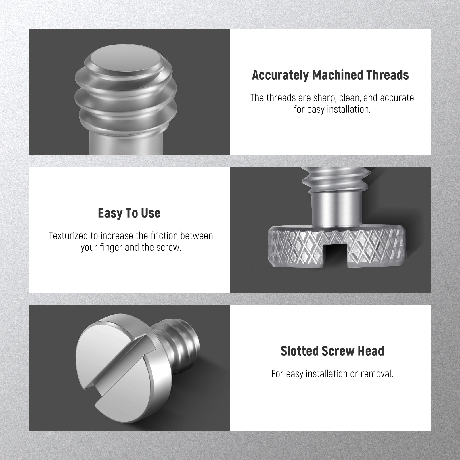• Wider Compatibility- The 1/4'' slotted screws are compatible with camera mounting plates, quick-release plates, tripods, monopods, and camera and telescope mounts with 1/4'' threaded holes