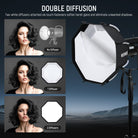 - Professional Octagon Softbox- This 35.4''/90cm octagonal softbox features a smooth, even silver internal coating on the thickened nylon cloth that broadens, diffuses, and softens light while retaining the true to life color rendition. Includes two layers of light diffusers and a honeycomb grid for optimal output