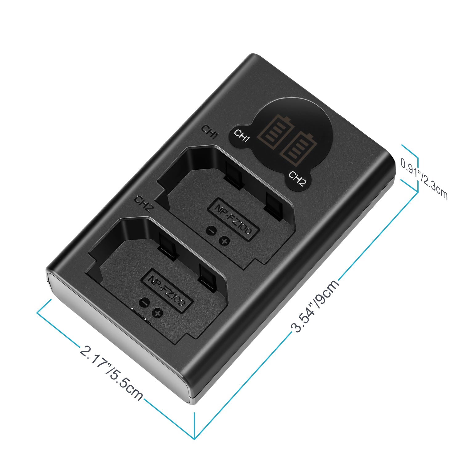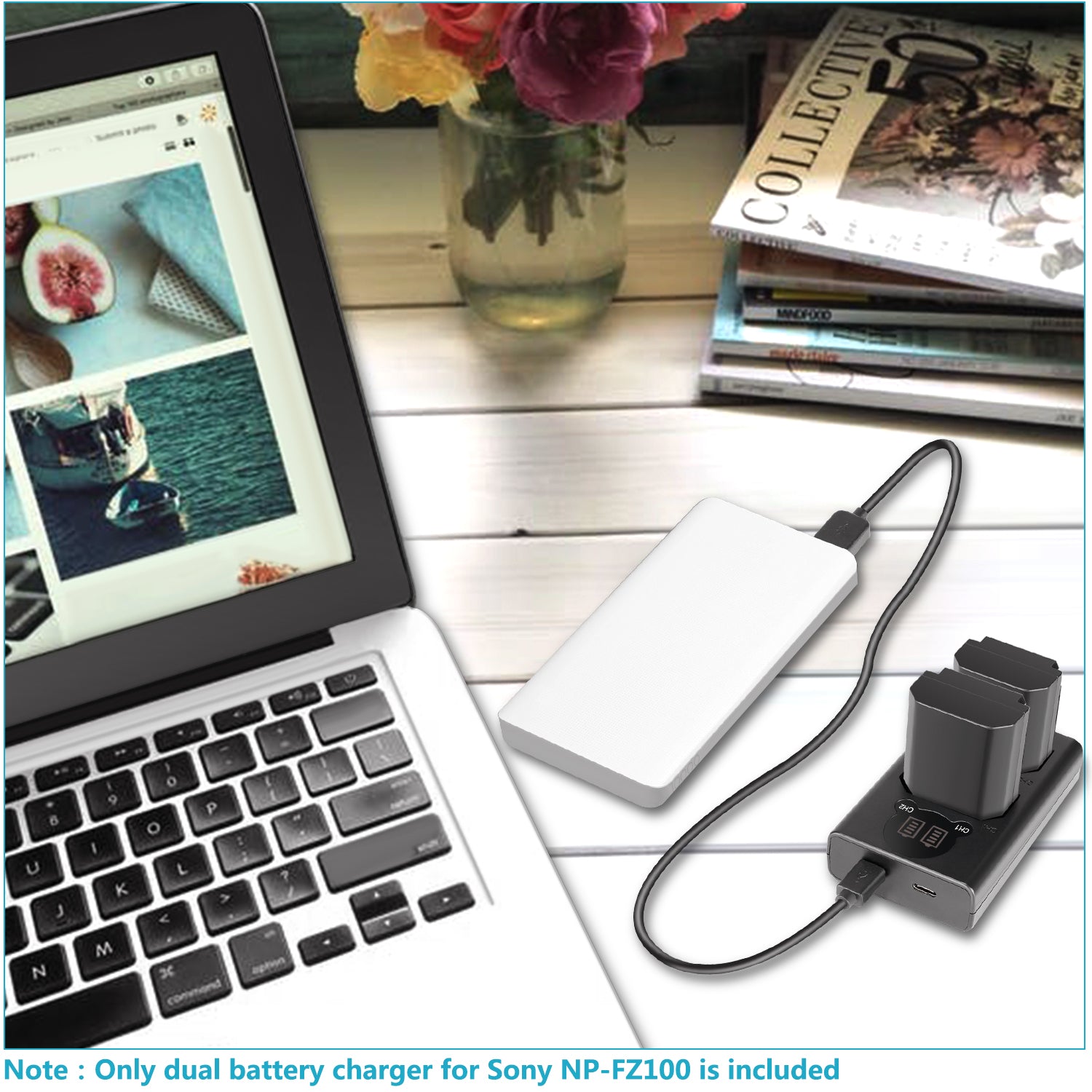 - COMPATIBILITY: 100% compatible with Sony NP-FZ100 Li-on Battery. Compatible with Sony ZV-E1, FX3, FX30, A1, A9, A9 II, A7R III, A7R IV, A7R V, A7S III, A7 III, A7 IV, A6600, A7C Cameras; It can charge 2 packs NP-FZ100 batteries at same time, also can charge 1 battery; Note: Battery is not included