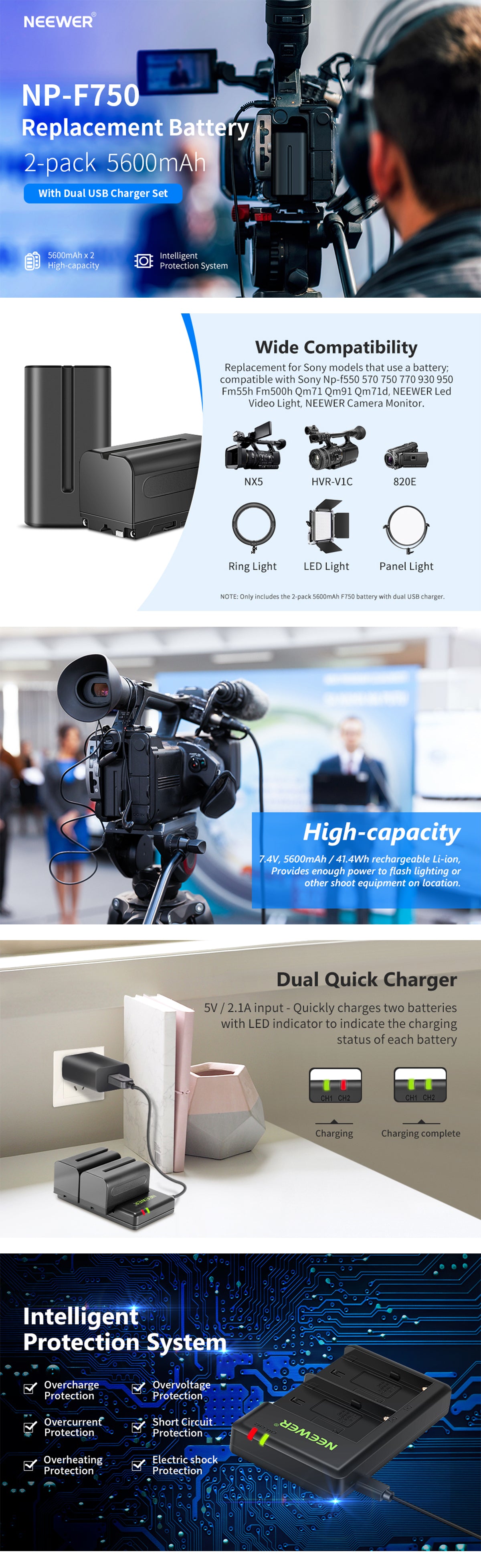 - Replacement for Batteries: NP-F330 NP-F530 NP-F550 NP-F570 NP-F730 NP-F750 NP-F770 NP-F930 NP-F950 NP-F960 NP-F970 NP-FM50 NP-FM55H NP-FM500H NP-QM71 NP-QM91 NP-QM51D NP-QM71D NP-QM91D, NEEWER Led Video Light, NEEWER Camera Monitor