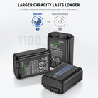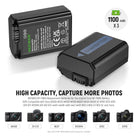 Reliable Power for Your Camera- Three 1100mAh replacement batteries for NP-FW50 provide abundant battery power for photographers, vloggers and filmmakers who work on outdoor creation and help them capture every precious moment. NOTE: For optimal battery longevity, please fully charge the battery before first use