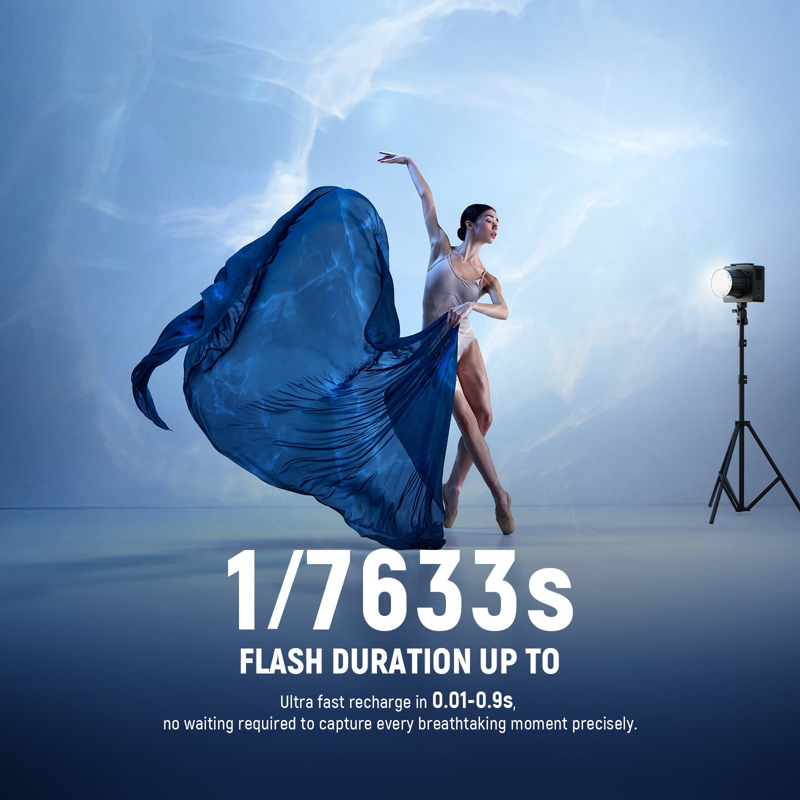 Monolights have a key advantage: short flash duration. This enables photographers to capture fast-moving subjects with sharp detail - from twirling dancers to splashing water. Photography monolights are capable of capturing split-second moments without motion blur, especially when used at lower power settings.