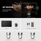- 180° Adjustable & Enhanced Cooling- Equipped with 1/4" screw holes on the bottom and side, the DSLR monitor offers flexible mounting options and includes a cold shoe mount for 180° adjustment. Additionally, the built in cooling fans efficiently dissipate heat for extended use. Note: Long press the power switch to turn on/off, then short press the power switch to enable/disable the touch screen. Double click the screen to pop up the main menu Supports screen zoom