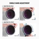 - Flexible Exposure Balance- Reduces light by 1-5 stops (ND2-32) to prevent overexposure in varying light conditions and allows you to capture waterfalls, rivers, and light trails with motion blur. Rotate the frame to the marks for the desired effect