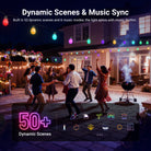 - Dynamic Scenes & DIY Mode- Featuring 50+ preset scenes with Daily Life, Holidays, Emotions, Nature, and continuous updates for more effects, our decorative waterproof outdoor string lights with smart color changing bulbs also support DIY customization via app as back yard balcony accessories, patio essential. Plug in lighting for Christmas, Halloween, Thanksgiving, Easter, birthday, camping tent/RV canopy awning decoration, indoor bedroom party, backyard garden wedding, out side yard market, etc