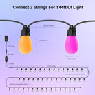 - Two Installation Options- The string lights features both hanging holes and hooks, allowing for quick and easy setup without any professional tools. Easily secure the bulbs through the holes using the included ties to keep them in place without shifting. Note: Up to 3 strings (144ft/45 m) can be connected