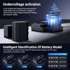 - OLED Smart Display- The main interface displays the real time charging status of each battery once plugged in, including voltage, current, temperature, and power, making the charging process visual. Press the button to switch to the display of the charger's input voltage, current, power, and temperature.