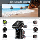 - Versatile Setup & Flexible Center Column- The camera tripod features an adjustable center column that can be raised for higher shooting angles, and horizontal positioning for 360° horizontal rotation and 120° vertical tilt. With a ball head, it additionally supports 360° panoramic photography and various shooting angles, essential and must have for content creator and influencers on low angle shots, sports photography, weddings, travel, vlogging and urban landscapes