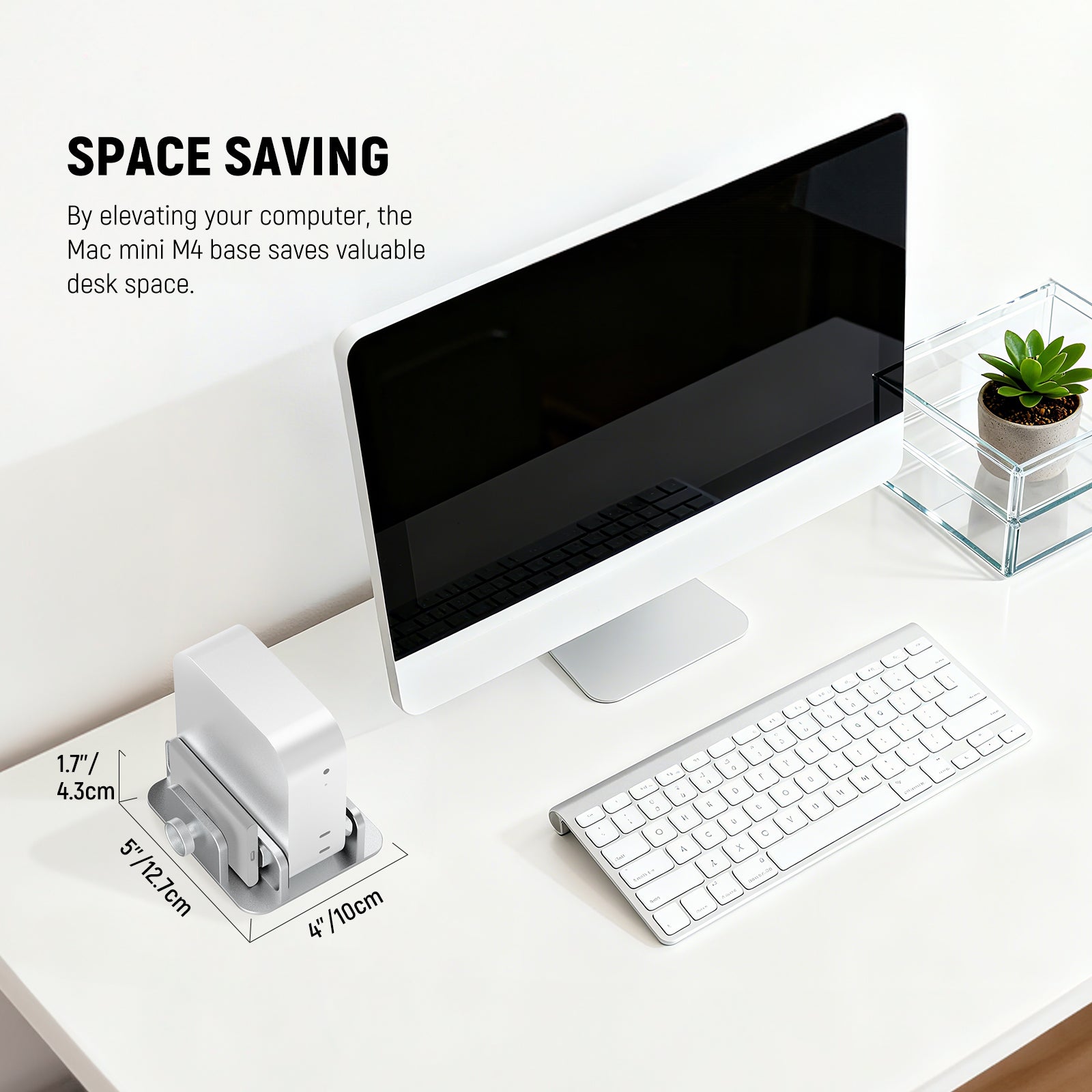 - Space Saving- By elevating the personal computer, the Mac mini M4 mount saves valuable desktop space while improving airflow for better performance