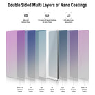 - Double Sided Multiple Coatings- Crafted with 30 layers of nano coatings on both sides, this UV filter reduces reflection and glare and is anti static, oil resistant, water repellent, and scratch resistant