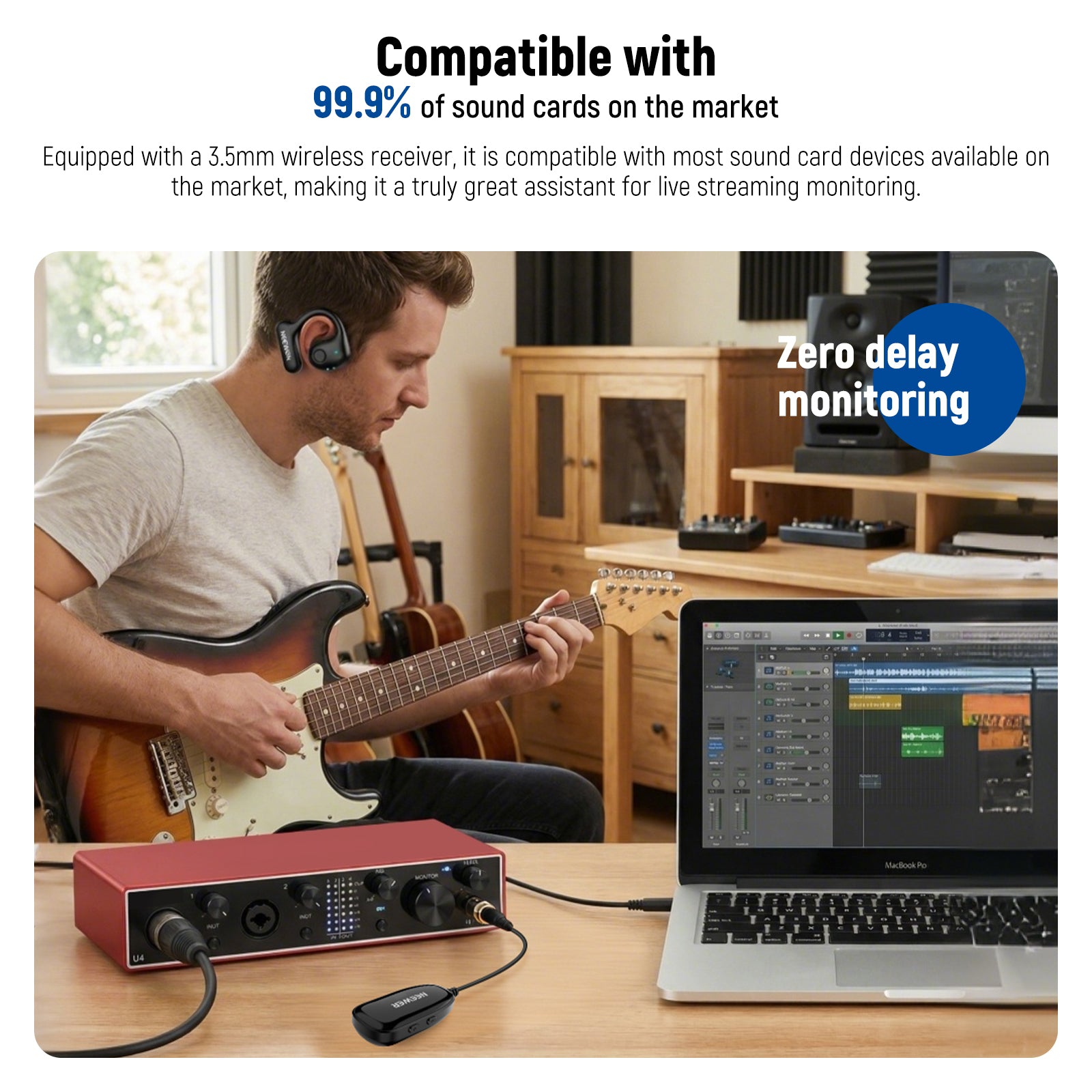 - OWS Monitoring Earphones- This OWS (open wear stereo) wireless monitoring earphones f or mo nitor system declutter the inconvenience of wired headphones and enable you to monitor sound in real time with no restrictions—perfect wireless IEM for outdoor live streams, vlogs, interviews, stage performances, musicians, singers and more