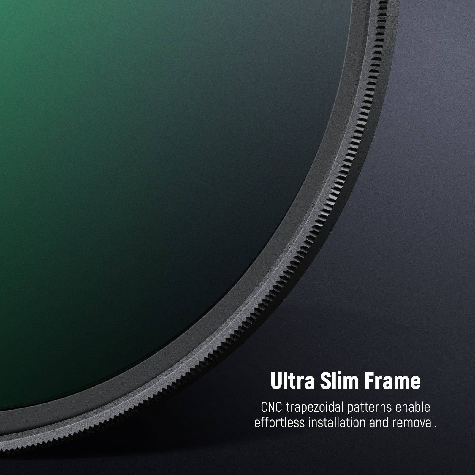 - Nonslip and Ultra Slim Frame- The ultra slim frame avoids vignetting and dark corners on wide angle and telephoto lenses. CNC trapezoidal patterns enable effortless installation and removal