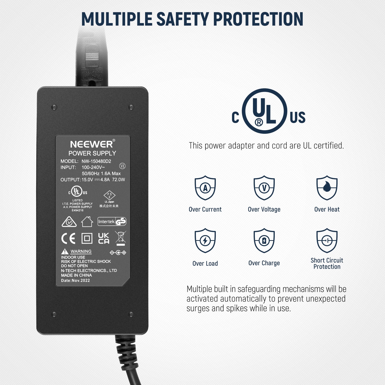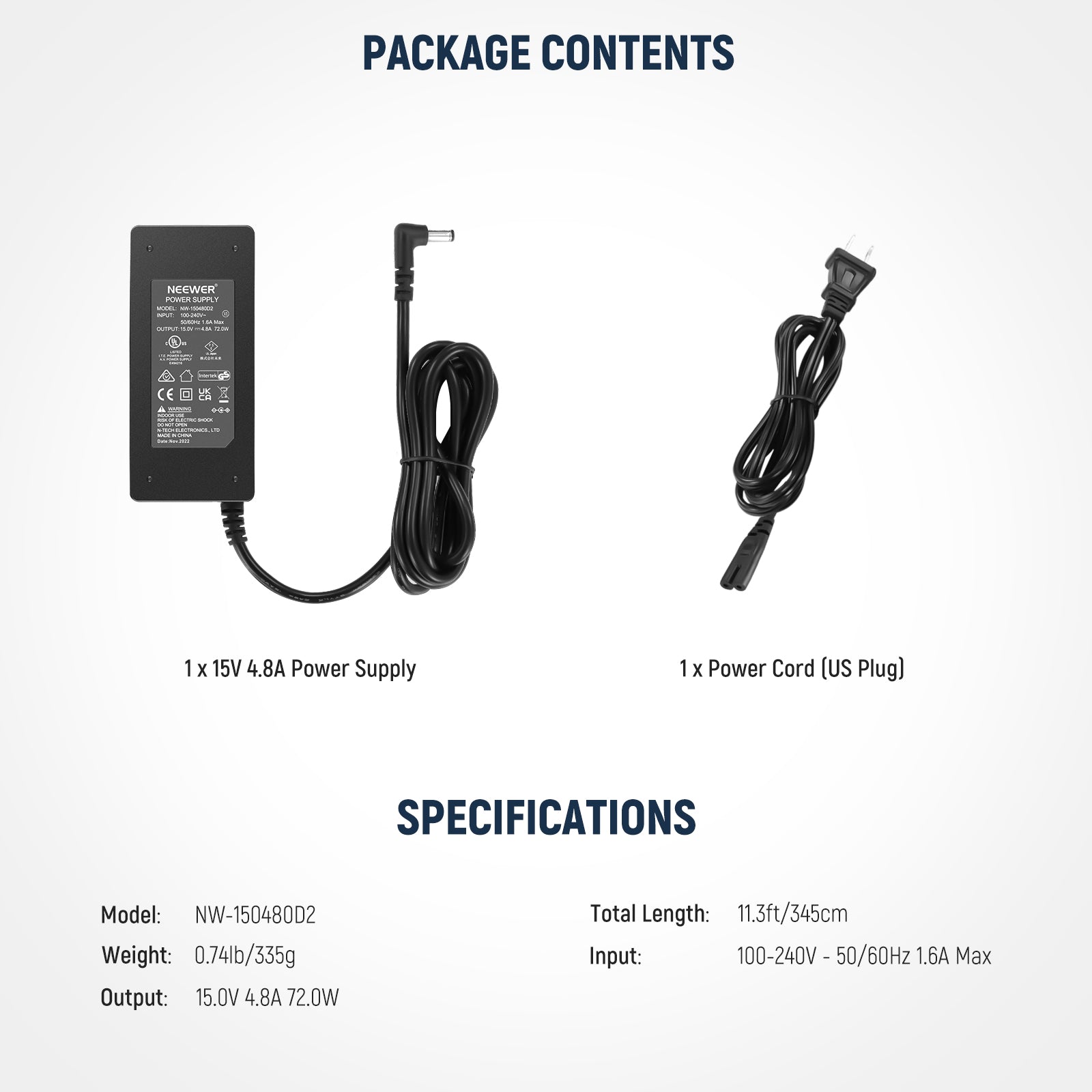 - Extensive Compatibility- Compatible with NEEWER LED Light Panels: RGB660 RGB168 RGB1200 RGB176 RGB190 RGBC80 RGB960 RGB530 RGB480 BH-20RGB NL660 NL480 660 530 480 LED NL-288ARC NL-360ARC NW48 T140 176 GL1 and GL1 Pro; NEEWER Continuous Lights ; NEEWER Ring Lights RL-18 RGB18 RL-14 and Other monitors, audio amp boards, portable powered speakers, cable boxes, wireless routers, CCTV cameras, DC motors, 3D printers, computer projects, hubs, switches, audio/video power supplies and more