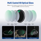 - HD Optical Glass with Multiple Resistant Coatings- With high-quality HD optical glass and 30 layers of nano coatings on both sides of the filters, the reflectivity can reach less than 0.1% to reduce flare and ghosting. Protect the filter from water, oil, dust, and scratches