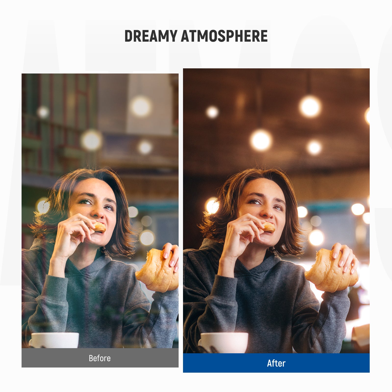 - Cinematic Soft & Dreamy Effect- Smooth out skin texture while adding a dreamy, cinematic effect to your shots, perfect for portrait photography, selfies, and personal vlogs