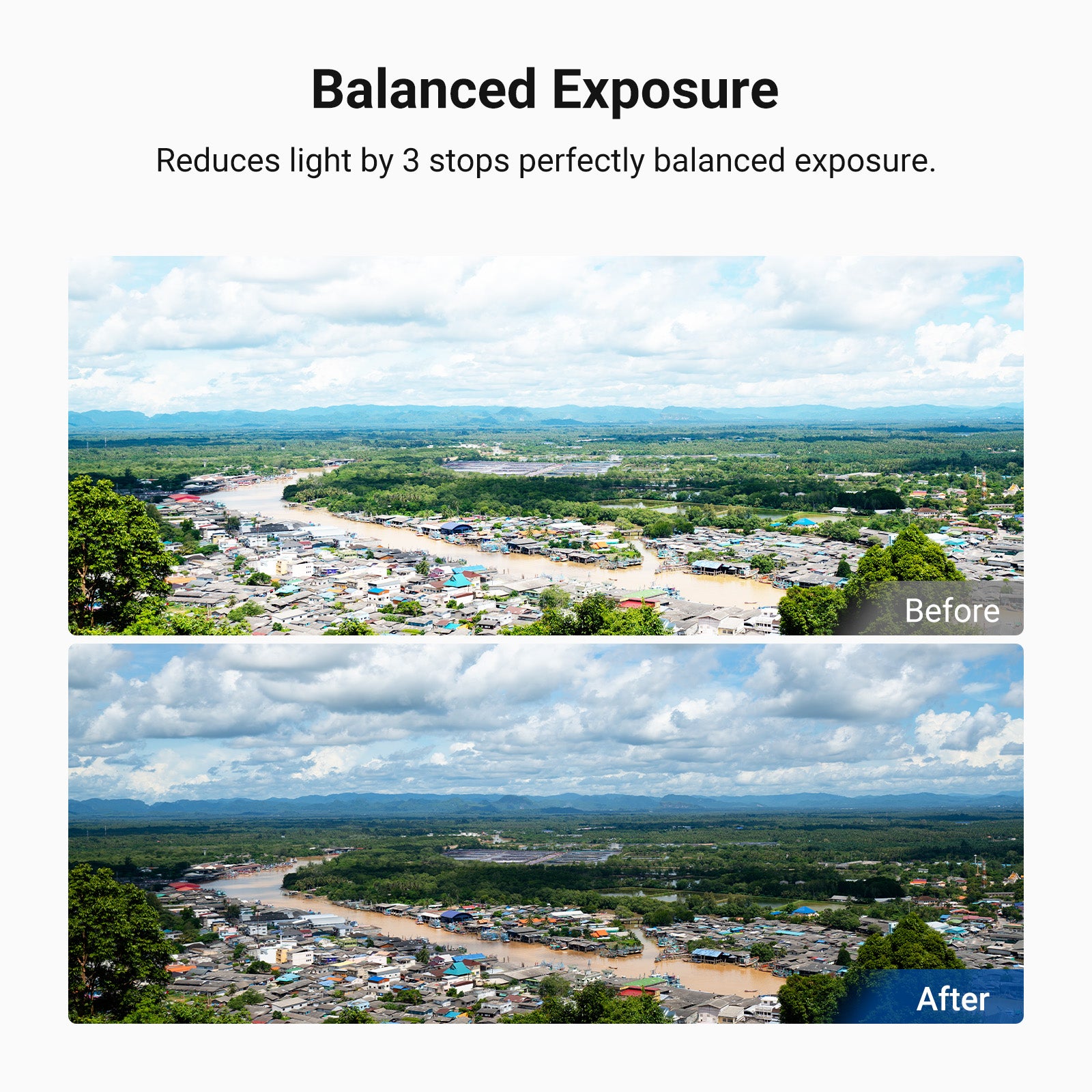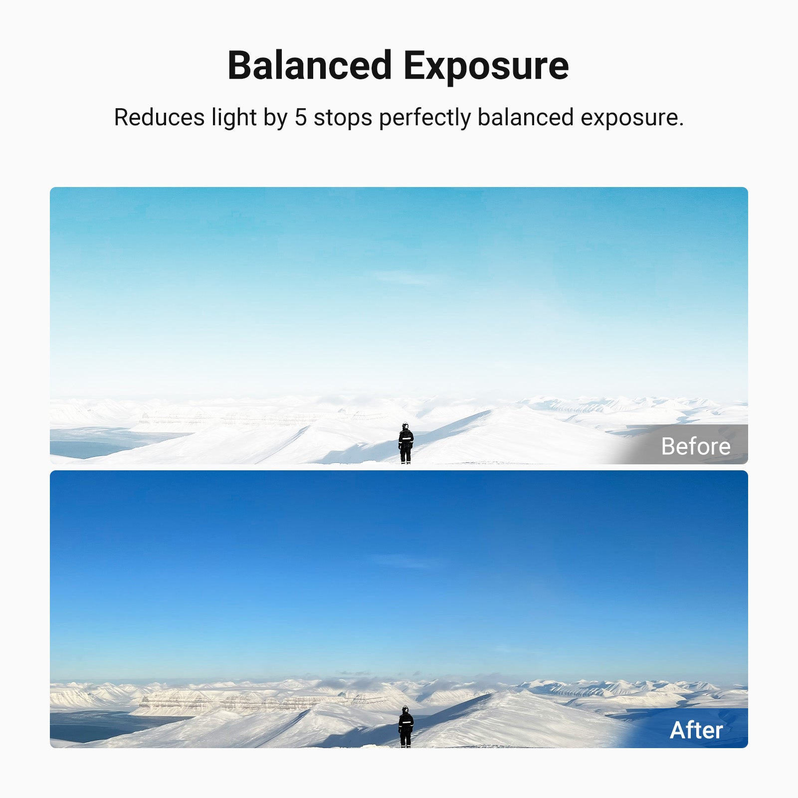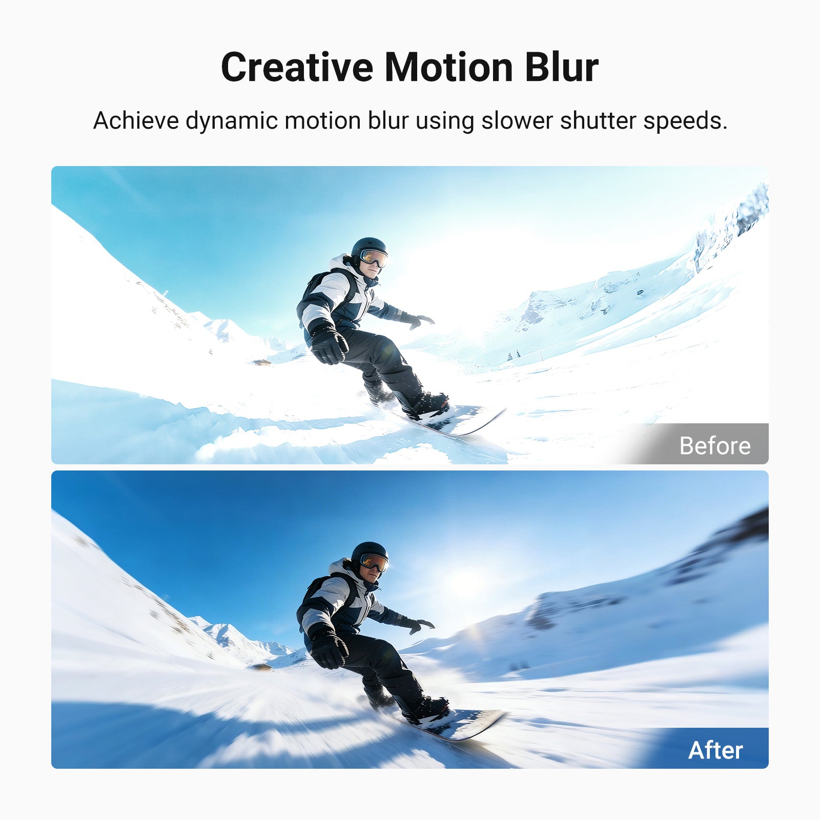 - Accurate Exposure Control- ND8 filters reduce light by 3 stops for balanced exposure in bright outdoor environments and cinematic video footage with motion blur effects