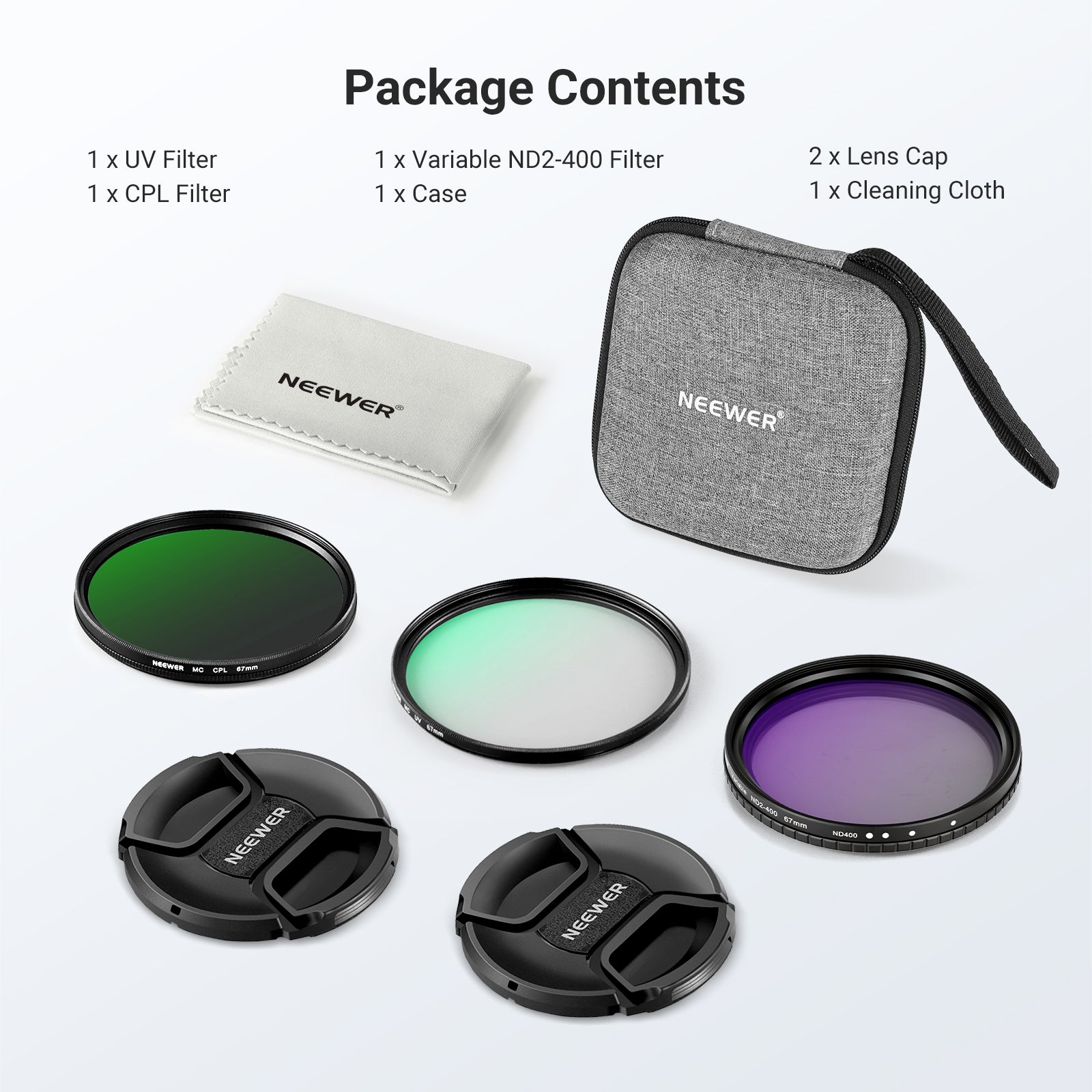 - Protective Case + Lens Caps- The hard case is an influencer must have to organize, protect, and transport the filters. Two lens caps shield the filters and lens from scratches, and a cleaning cloth keeps the filters spotless