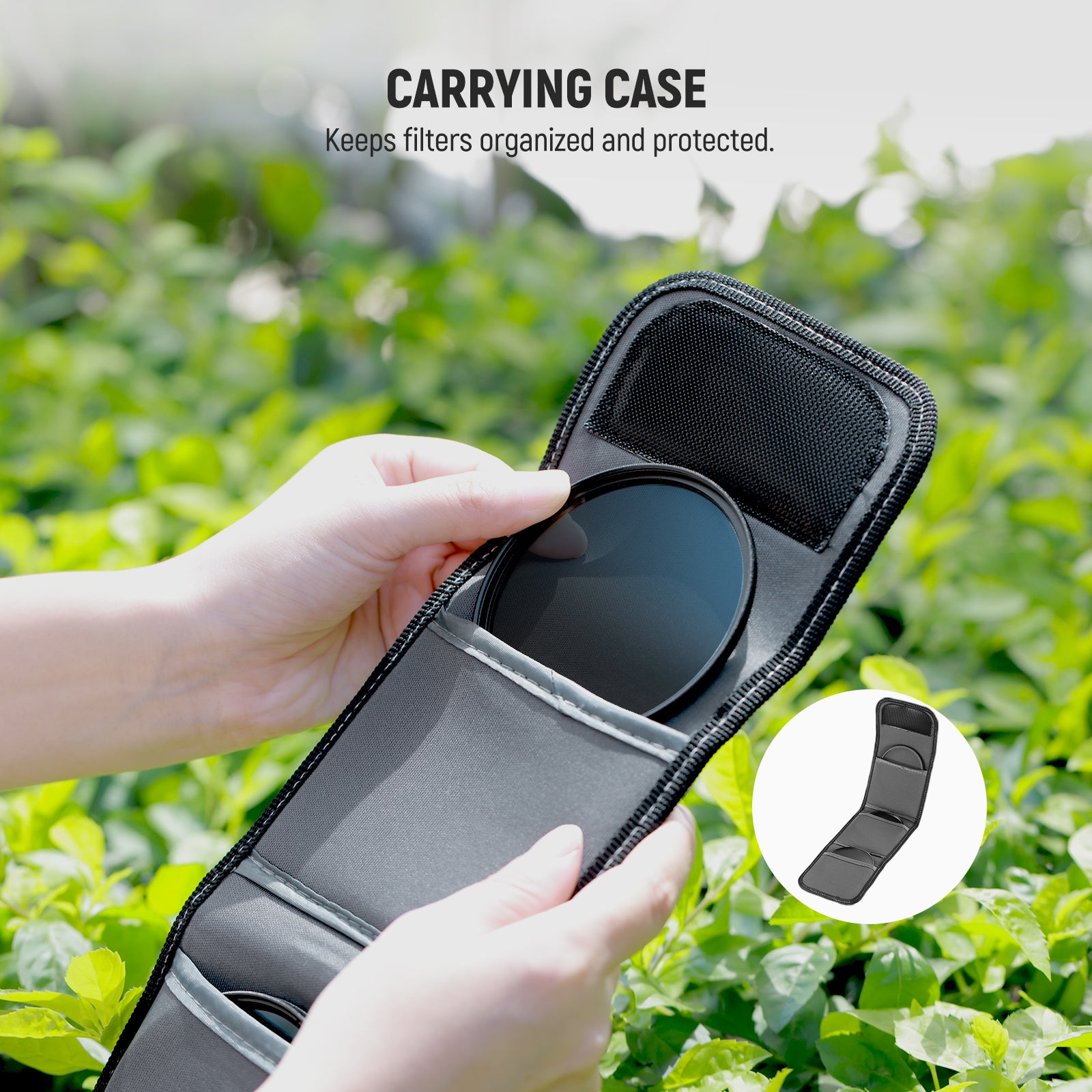 • Trifold Filter Storage Case- Compact and portable, the foldable case with individual slots protects filters from impacts and scratches—ideal as an outdoor content creator essential and influencer must have