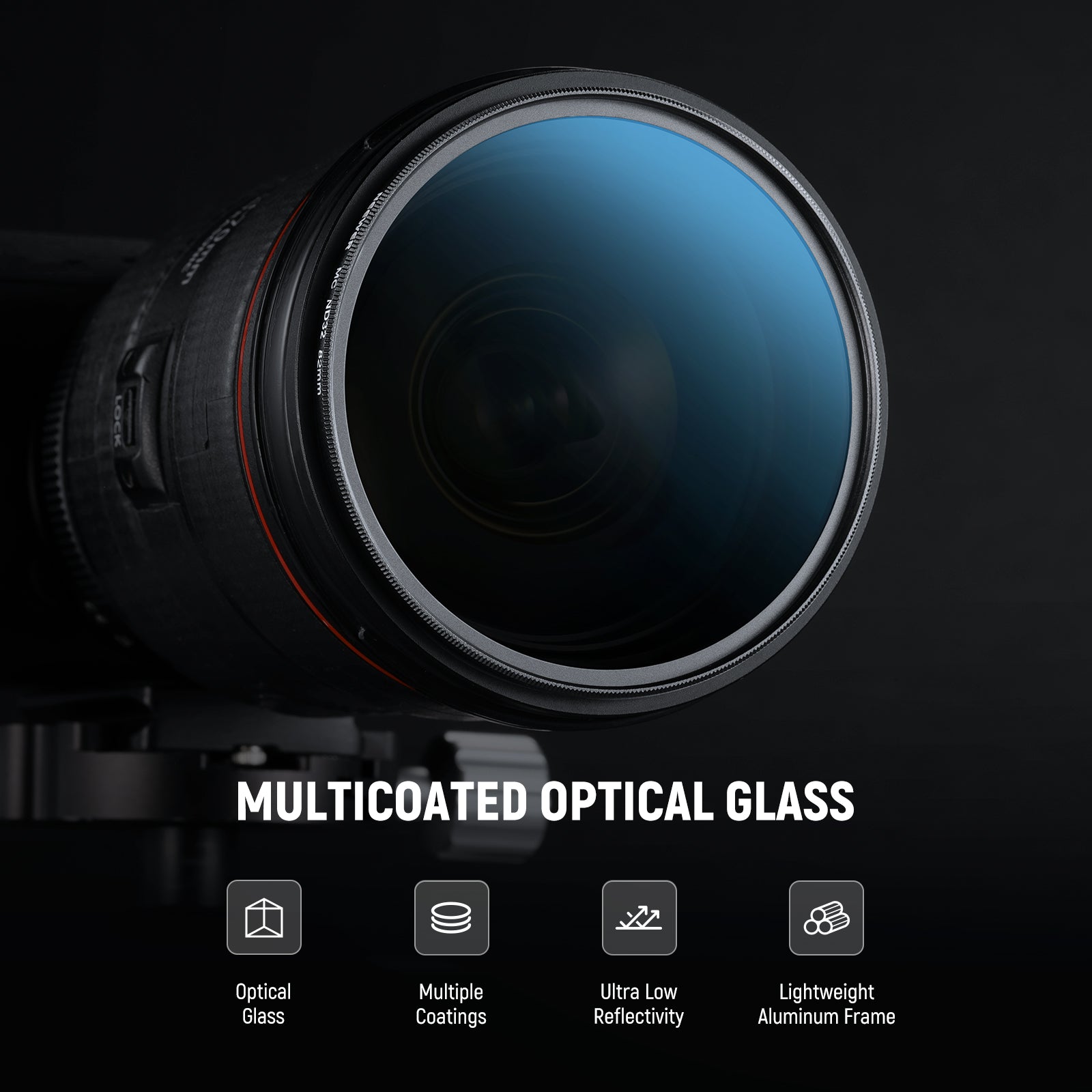 • Precise Exposure Balance- ND8, ND32, and ND64 neutral density filters cut light by 3, 5, and 6 stops, allowing you to accurately control exposure in various lighting conditions and capture movements with cinematic motion blur