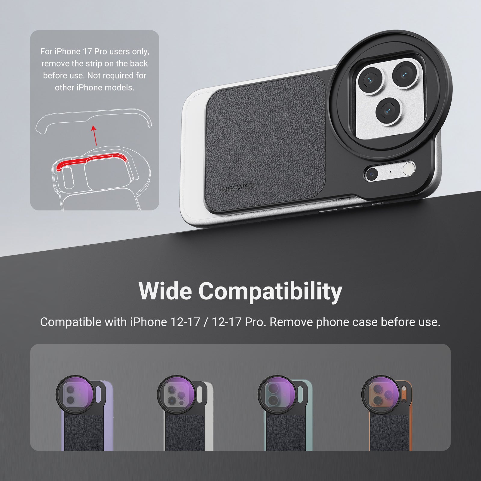 - For Standard & Pro Versions- Compatible with iPhone 17 / 16 / 15 / 14 / 13 / 12 / 17 Pro / 16 Pro / 15 Pro / 14 Pro / 13 Pro / 12 Pro as cell phone camera photography accessories. Remove phone case before use. For 17 Pro, peel off the interior silicone strip as directed in the manual