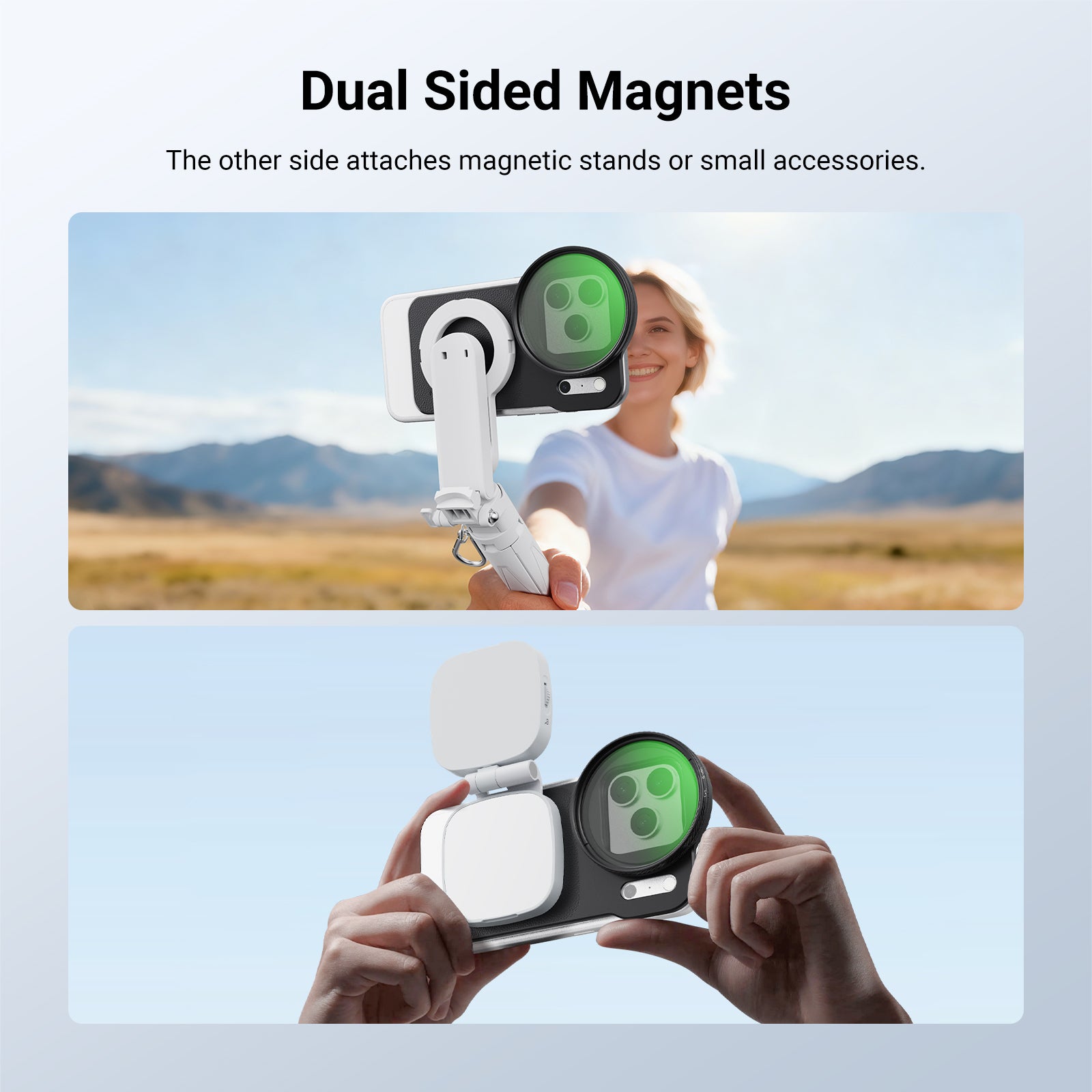 - Ideal for Magnetic Accessories- Magnets on the other side can attach magnetic phone camera photography accessories like desktop stands, phone tripod mounts, and selfie sticks