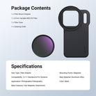 - Magnetic Phone Filter Mount- Compatible with MagSafe, this magnetic phone camera lens filter mount adapter backplate snaps onto the back of your phone and connects any 67mm filter for creative mobile photography and video recording