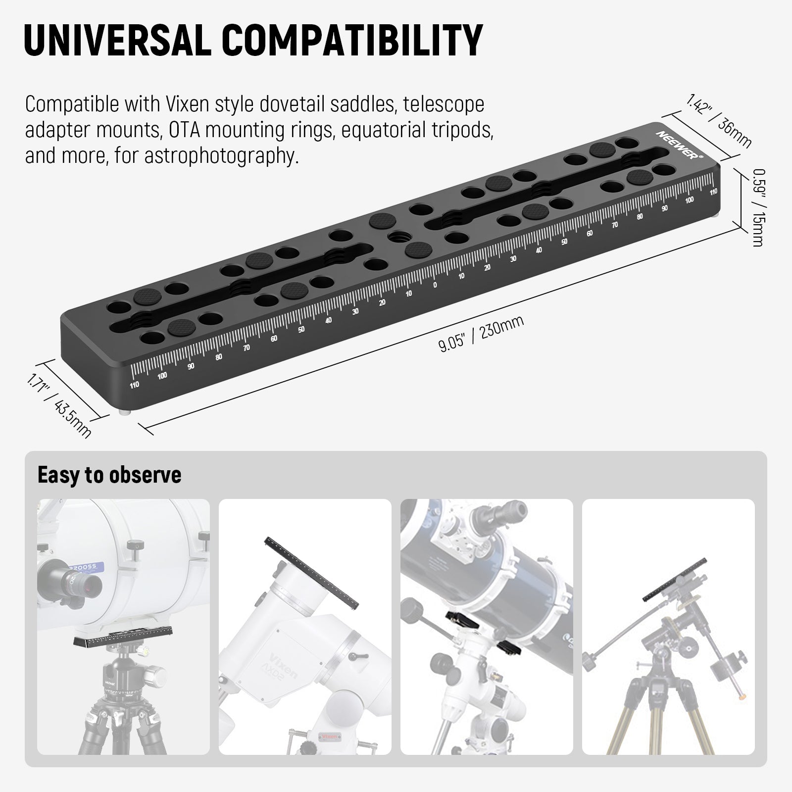- Precise Scale Markings- Scale markings on either side help you find a precise position to mount your equipment for astrophotography, celestial observation, night sky watching and stargazing