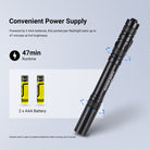 - Convenient Power Supply- Powered by 2 AAA batteries, this tiny pocket pen flashlight lasts up to 47 minutes at full brightness. Simply twist it open to replace batteries when running out of power
