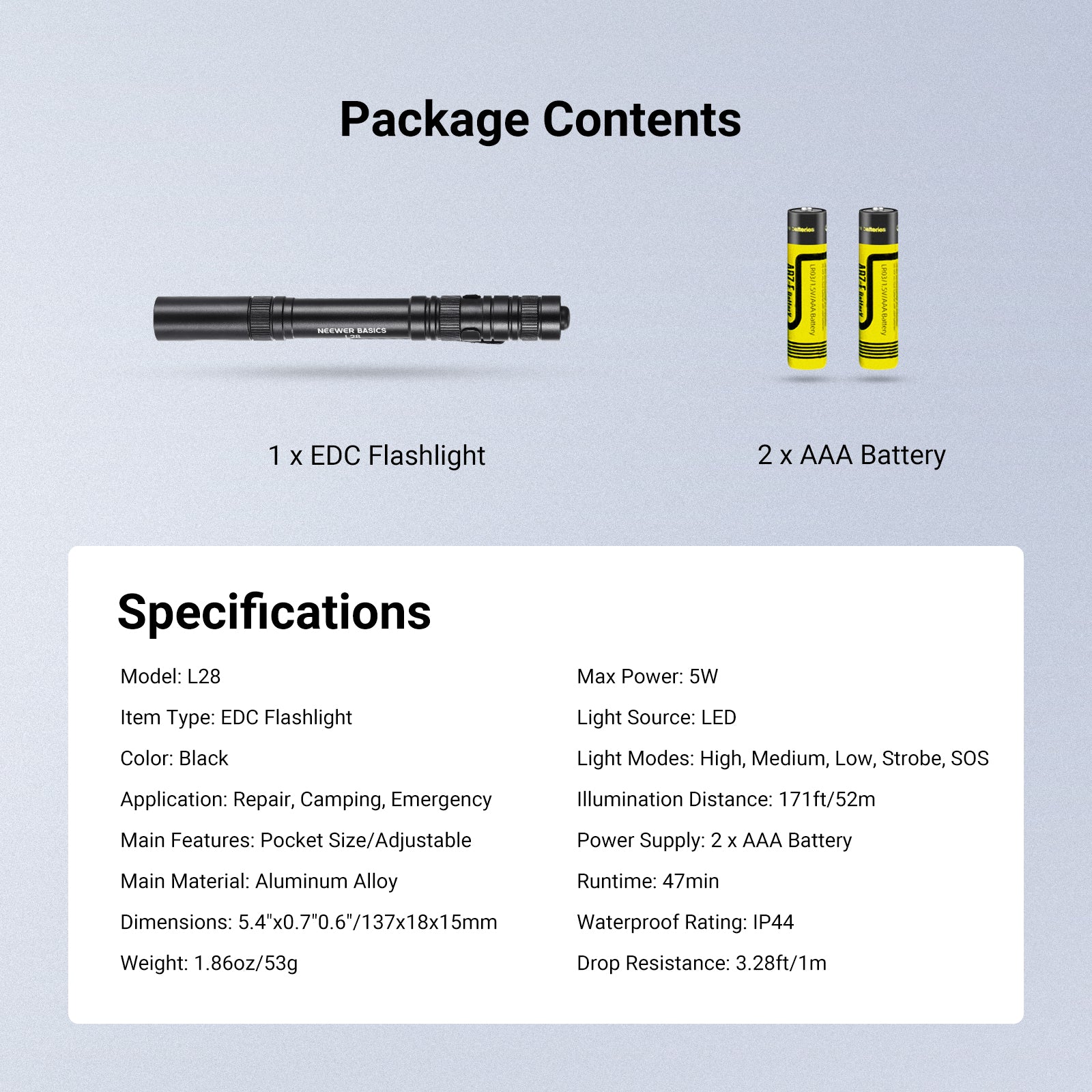 NEEWER BASICS L28 5W Portable EDC Flashlight