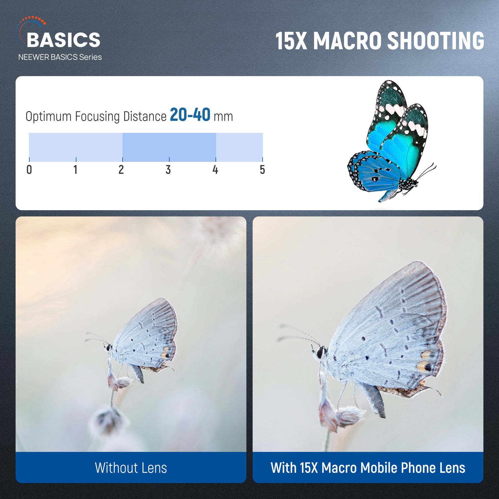 - Excellent Optical Performance- Constructed with 2 elements in 2 groups, these lenses utilize HD optical glass with multiple protective coatings that protect against water, fingerprints, and scratches. A cleaning cloth is included for easy maintenance. To use the macro lens, simply unscrew the wide angle lens. It offers 15x magnification with a 2-4cm optimal shooting distance. The lens provides a beautiful bokeh effect, ideal for capturing detailed shots of insects, jewelry, coins, plants, and other close ups