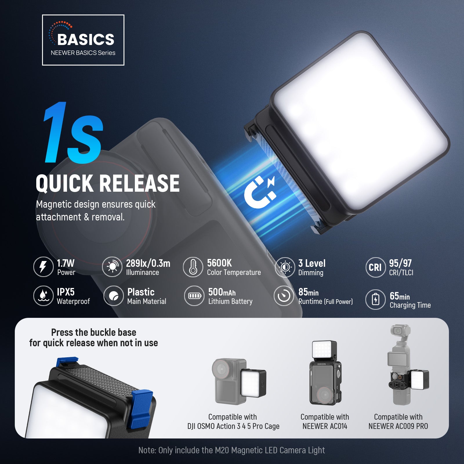- Introducing NEEWER BASICS- Simple and practical, NEEWER BASICS is an economical product line that focuses on essential functions and designs, without unnecessary extras and materials. NEEWER M20 is a small, lightweight LED fill light for photography and video, featuring 20 LEDs to provide ample brightness for vlogs, selfies, videos, etc. Compatible with DJI OSMO ACTION 3/4/5 PRO camera cage accessories & for NEEWER AC009 PRO Cage, it is an ideal lighting attachment for streamlined setups