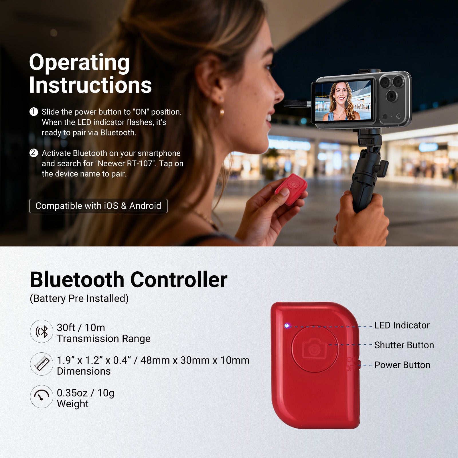 - 3 USB C Ports- For screen mirroring, microphone connection, and power delivery to phone when connected to an external power source. Supports one click 180° screen rotation to eliminate inverted images, and includes a Bluetooth remote for wireless shutter control