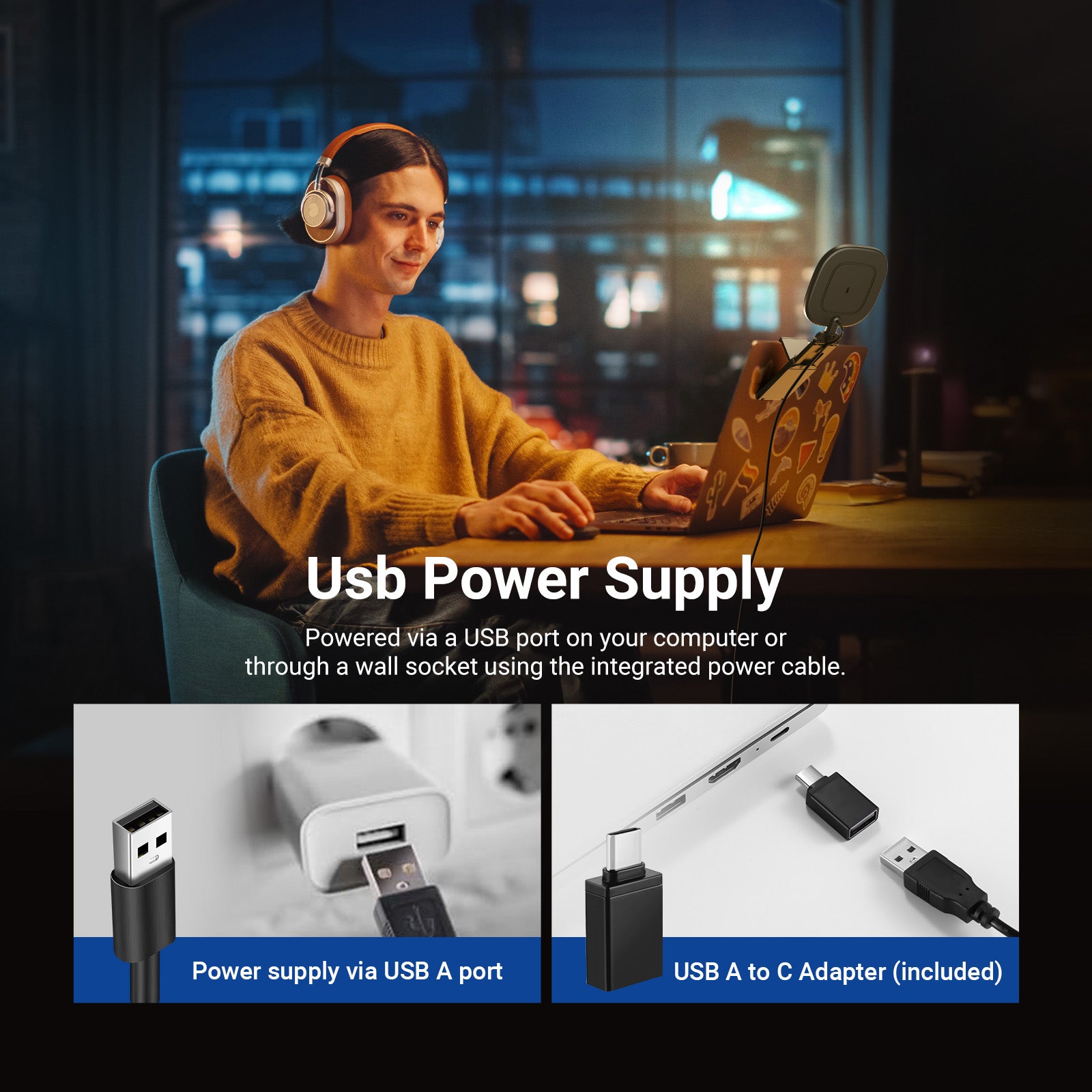 • Versatile Full Screen Light- Mount the small LED panel influencer light with stand directly onto a monitor, curved monitor, laptop, computer screen or place it on the desktop as desk setup accessories. Attach to a webcam via the 1/4" threaded hole. Portable lighting for TikTok YouTube recording, podcast, video conferencing, Zoom meeting/call, gaming streaming, online teaching, selfie, makeup artist filming, reading book, etc. Power it via a USB port with the 6.3'/193cm integrated power cable