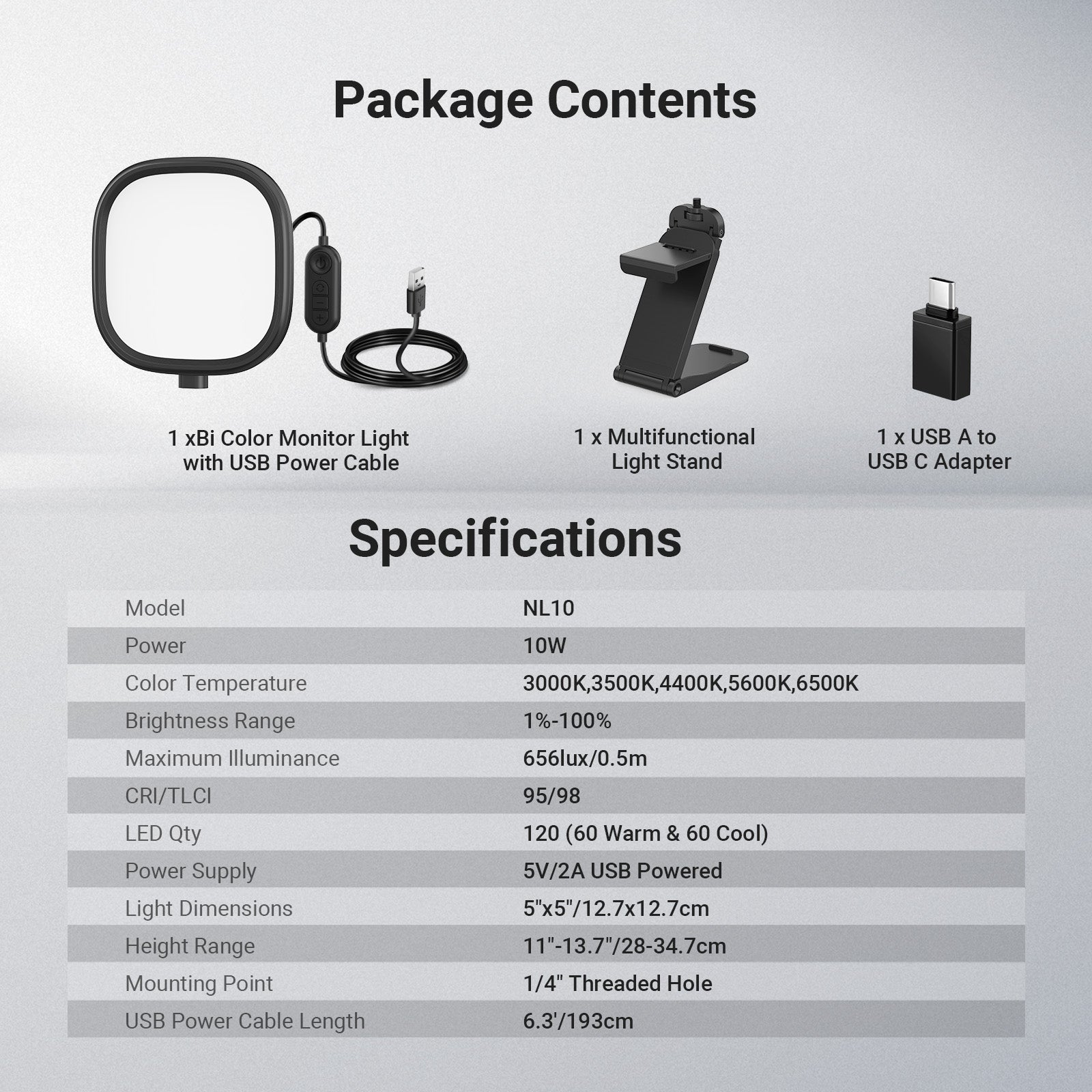 • 1 x Bi Color Monitor Light with USB Power Cable