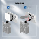 • Multiple Device Expansion- The cell phone holder attachment for tripod includes a cold shoe mount and two 1/4" screw holes for LED lights and microphones, ensuring steady filming or video recording
