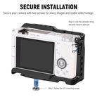 - Multiple Mounting Points- Abundant 1/4” female threads and a cold shoe mount maximize your accessory expansion options. For instance, magic arms, small microphones, and compact LED video lights can be attached to the cage for enhanced video quality