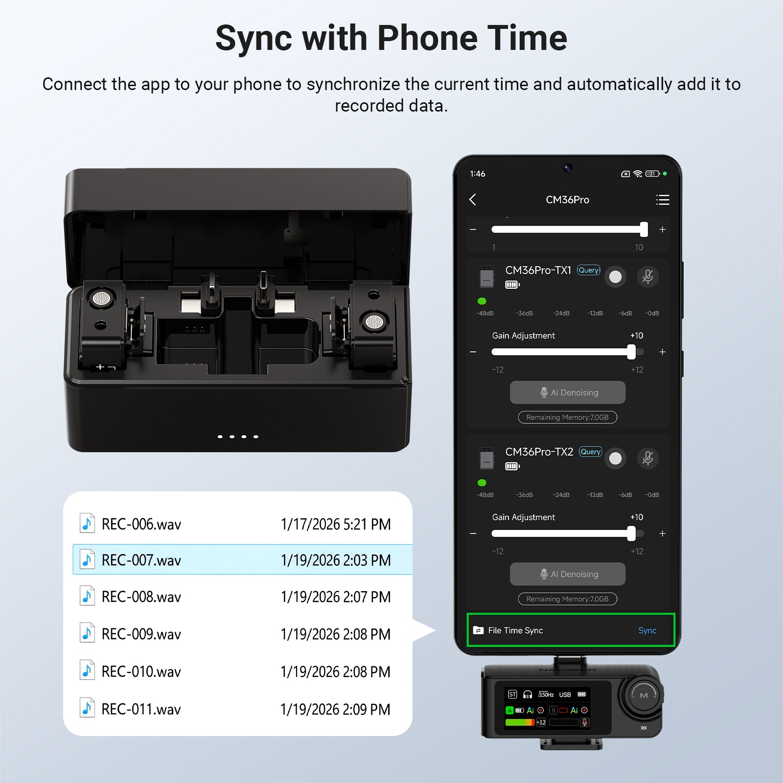 - 32bit Float/8GB Storage- 32bit float captures details without distortion even during sudden volume changes. TX supports 8GB internal recording, automatic file splitting and USB C export. RX syncs current time from phone via NEEWER MIC app and embeds real time markers into files for fast locating, management, and alignment in editing, significantly facilitating multi-track, cross-device, and extended recording