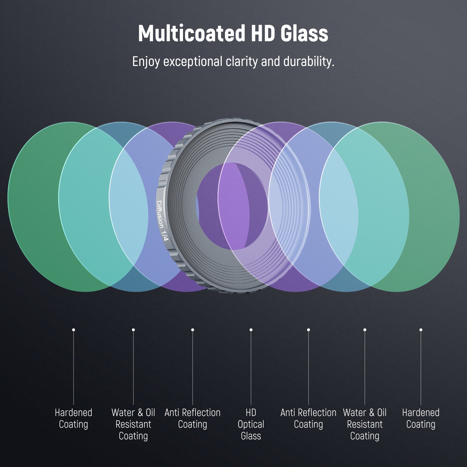 - Multicoated HD Optical Glass- HD optical glass ensures sharp images without chromatic aberration or optical distortion. Multiple protective coatings on both sides resist water, oil, dust, and scratches for high durability and effortless cleaning