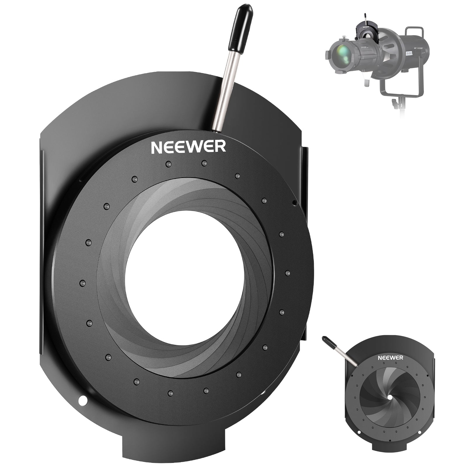 - Easy to Use- Simply put this iris diaphragm into the drop in slot of the NEEWER LS-39 spotlight snoot, and rotate the handle to change the diaphragm aperture diameter, eliminating the burden of changing different iris diaphragms