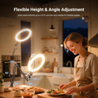 - Flexible Height & Angle Adjustment- The circle ring light with articulating desk stand mount extends up to 3.56ft, and tilts and rotates for flexible angles, for desktops up to 2.16" thick. Ideal phone camera overhead lighting for recording, filming, video calls, podcast, social media films, makeup, etc.
