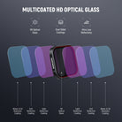- Multicoated Optical Glass- The premium optical glass with multiple resistant coatings ensures sharp imaging while withstanding water, fingerprints, and scratches during everyday use. A cleaning cloth is included for upkeep