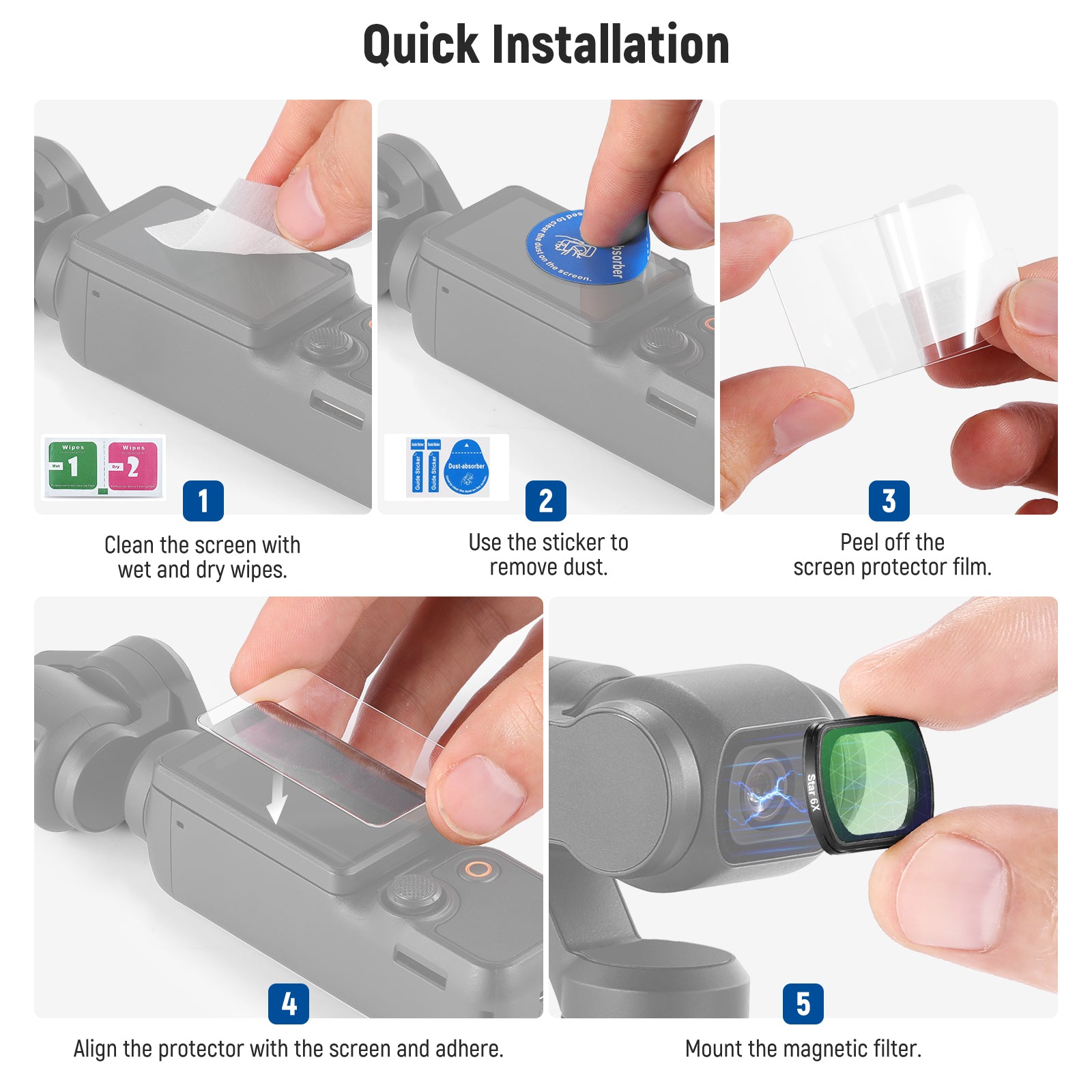 - Designed for Osmo Pocket 3- This star effect filter is compatible with DJI Osmo Pocket 3 Gimbal Vlogging Camera and Pocket 3 Creator Combo. With a sturdy and ultra slim frame, the filter will not affect gimbal storage. Note: Do not apply lens protectors, as they can reduce magnetic strength, cause chromatic aberration, and interfere with gimbal storage