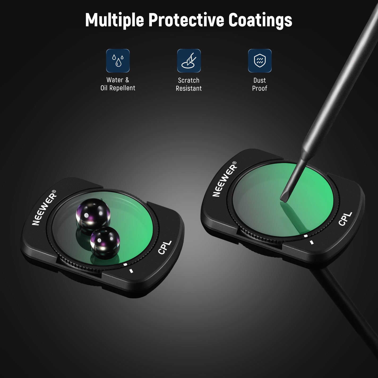 - Fully Compatible with DJI Osmo Pocket 3- NEEWER magnet circular polarizing filter is compatible with DJI OSMO Pocket 3, featuring an instant and secure magnetic attachment, providing your device with a significant image quality boost whether you're shooting or recording video. Note: If a protective film is applied to the lens, it may interfere with gimbal storage