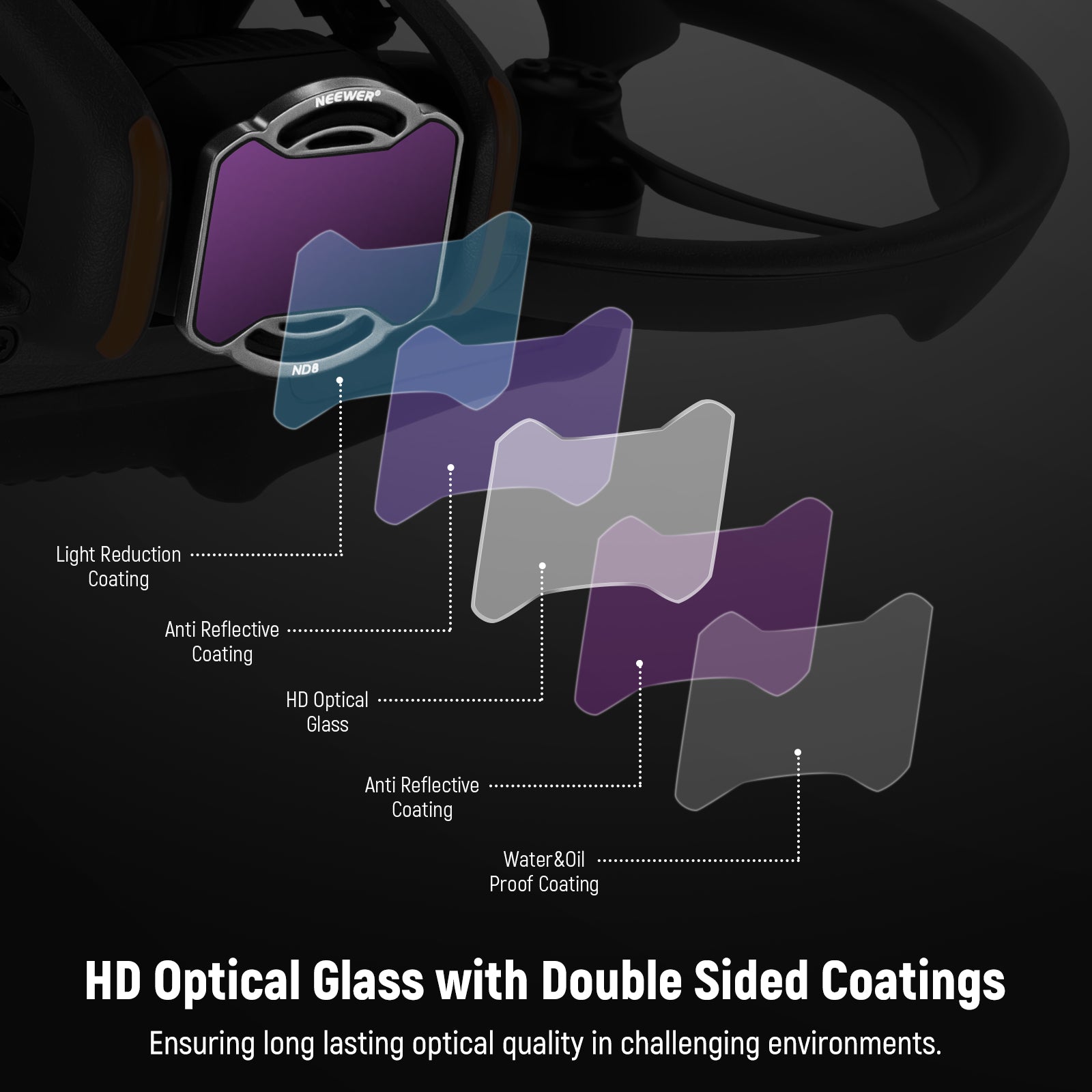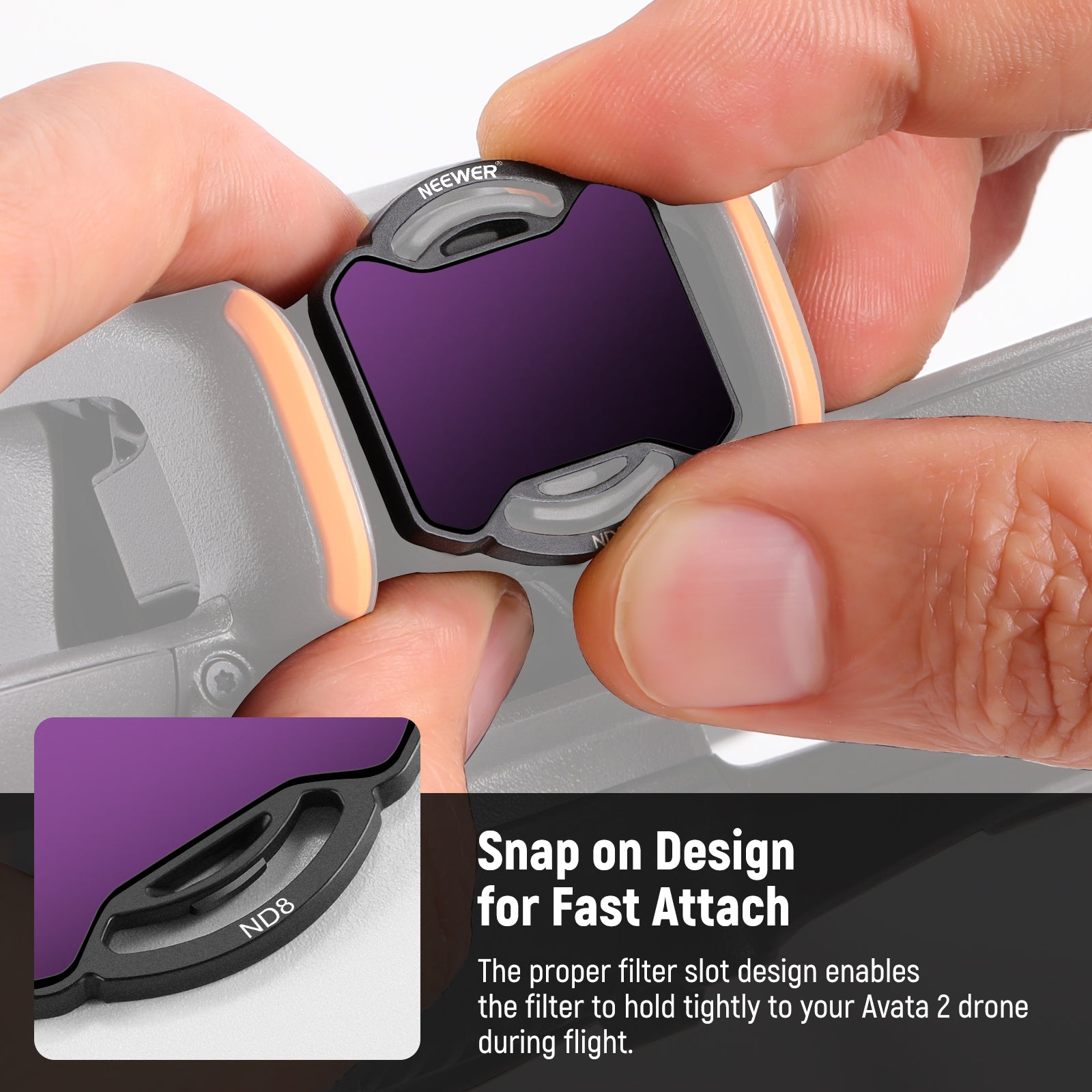- Fully Compatible with Avata 2- NEEWER ND&UV Filter Set compatible with DJI Avata 2 includes ND8, ND16, ND32, ND64, ND256 filters and UV filter, enabling you to select the perfect neutral density filter to precisely control the aperture and shutter speed, as well as protecting your lens from dust and scratches. Mount these filters on your drone’s lens, improve exposure control in varying weather conditions to deliver magic and thrilling drone shots