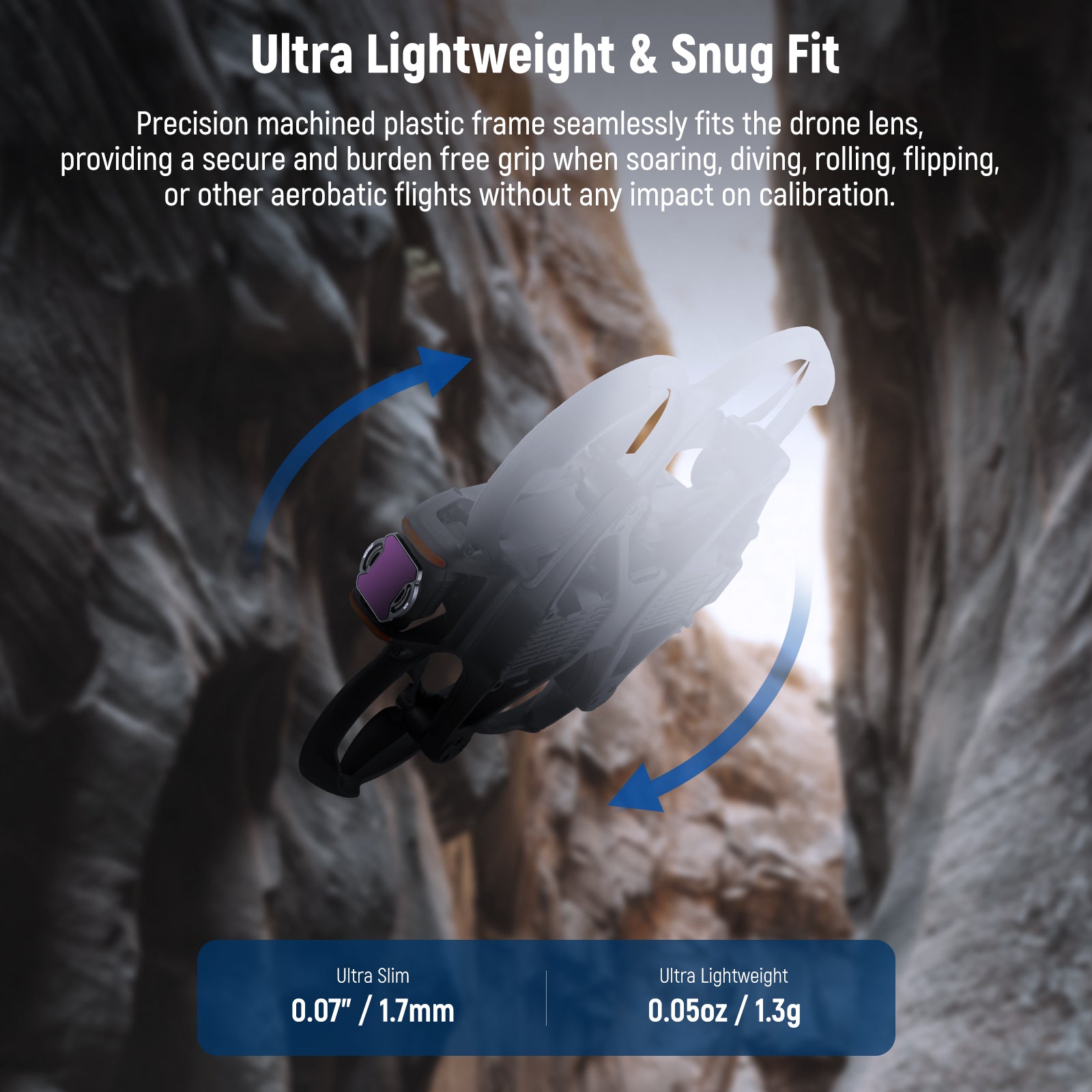 - Multi Coated Optical Glass & Snug Fit Frame- With multiple layer coatings on both sides of the HD optical glass, these drone lens filters are water repellent, scratch resistant, and oil proof, ensuring long lasting optical quality in challenging environments. Precision CNC machined ultra slim frame seamlessly fits the drone lens, providing a secure and burden free grip when soaring, diving, rolling, flipping, or other aerobatic flights without any impact on calibration