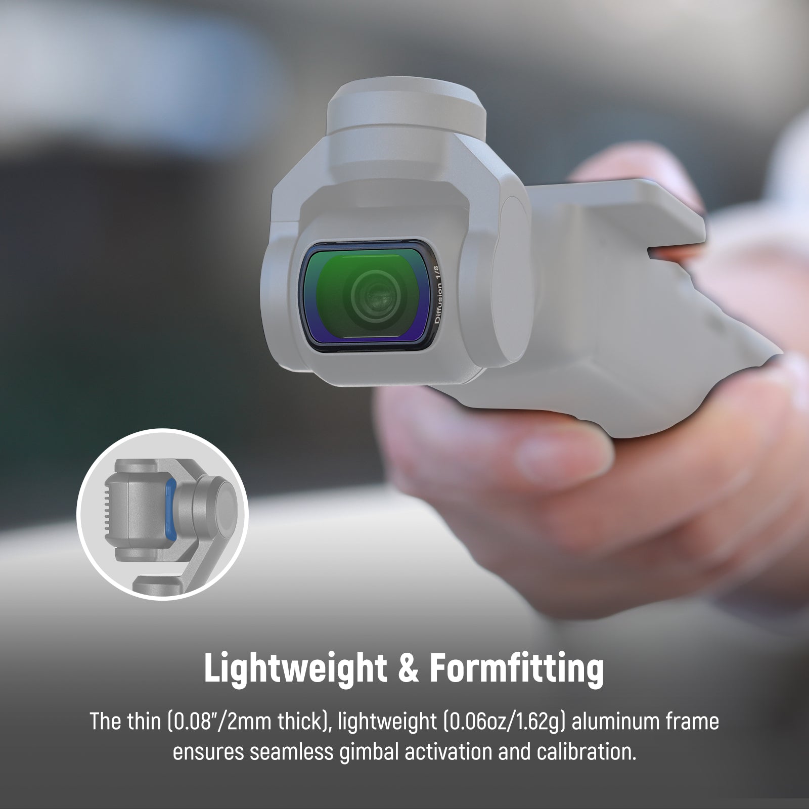 - Slim & Lightweight Construction- With sturdy and ultra slim frames, filters will not affect gimbal storage. Note: Do not apply lens protectors, as they can reduce magnetic strength, cause chromatic aberration, and interfere with gimbal storage