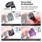 - Secure Snap On Attachment- Snap on design ensures quick attachment and removal, while a hook keeps the filter firmly in place during flight. The slim and lightweight metal frame prevents vignetting and will not affect the use of the gimbal protector