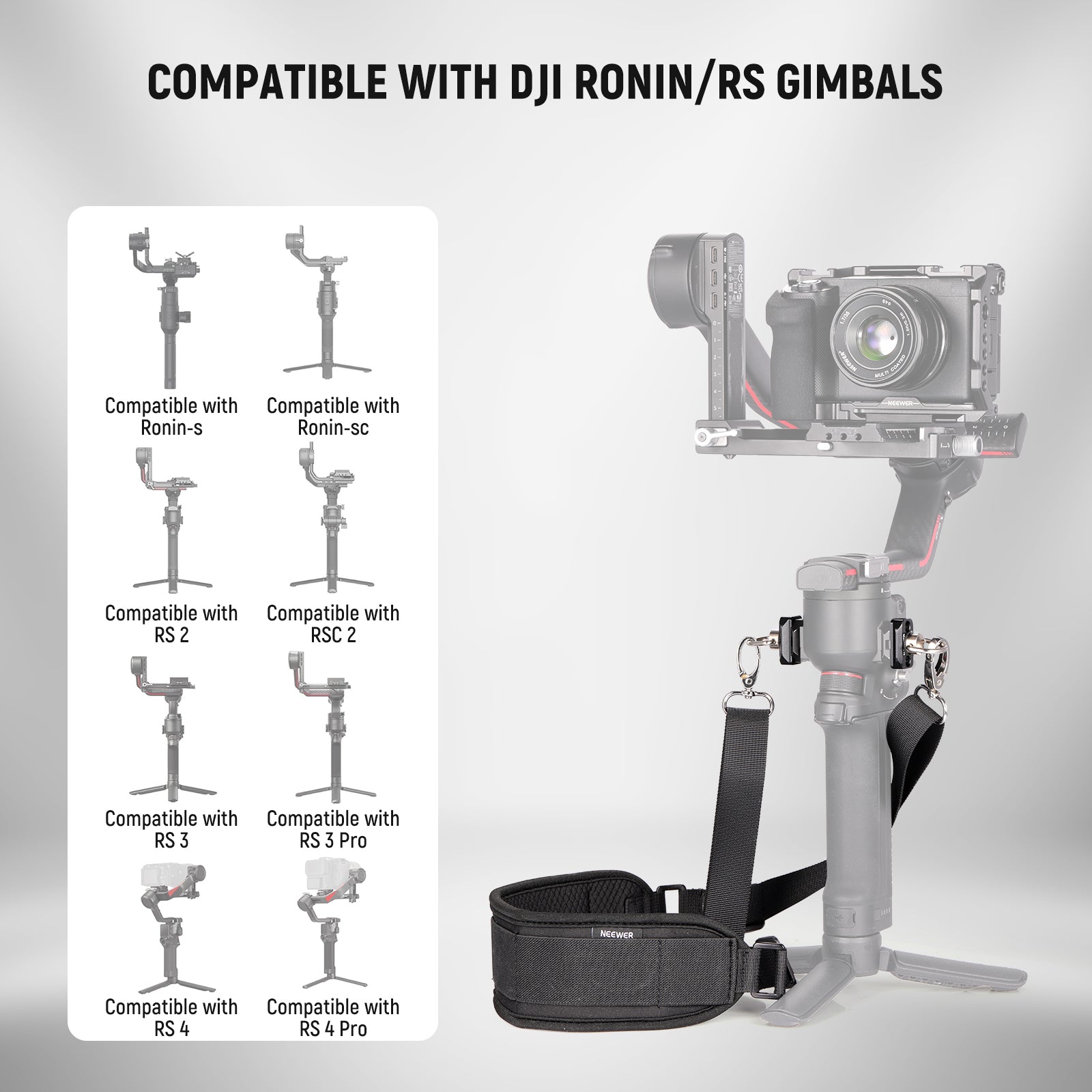 - Neck Shoulder Strap with NATO Rails- This gimbal neck strap kit is compatible with DJI RS4 RS4 Pro RS3 Pro RS3 RS2 RSC2 Ronin S Ronin SC handheld stabilizers. Directly attach the two mini quick release NATO rails to the built in NATO ports of RS4/RS4 Pro/RS 3/RS3 Pro/RS 2/RSC 2, or the Ronin Series Accessories (RSA) Ports of Ronin S and Ronin SC before connecting the neck strap