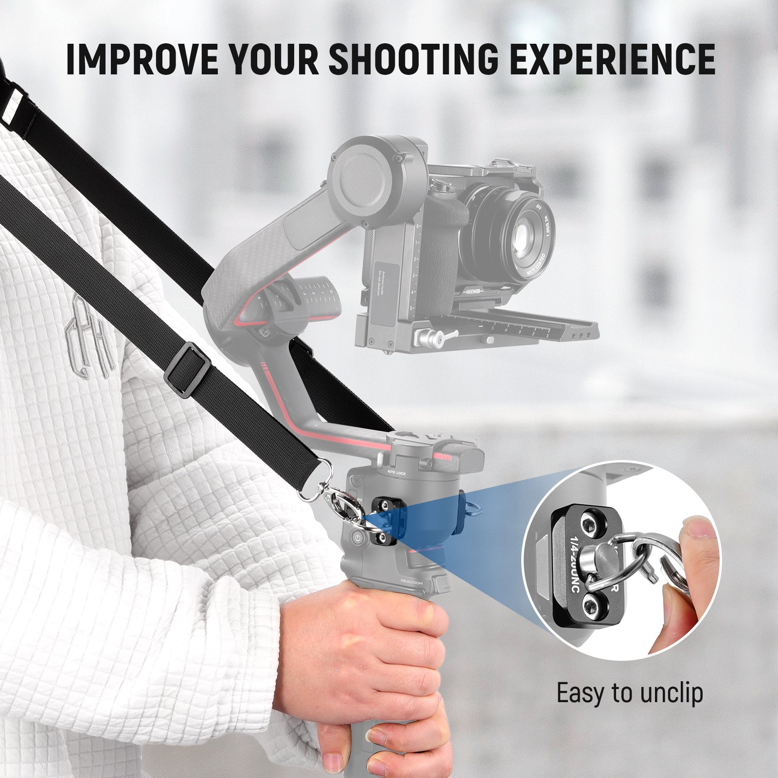 - Two 1/4" Screw D Ring Attachment- Securely connect the gimbal stabilizer shoulder neck strap to the mini NATO rails via the 1/4" screw D rings. You can also attach the D ring screws to our ST49 Sling Handle GA006 Dual Handgrip for added stability and easier operation. Also compatible with SmallRig stabilizer accessories
